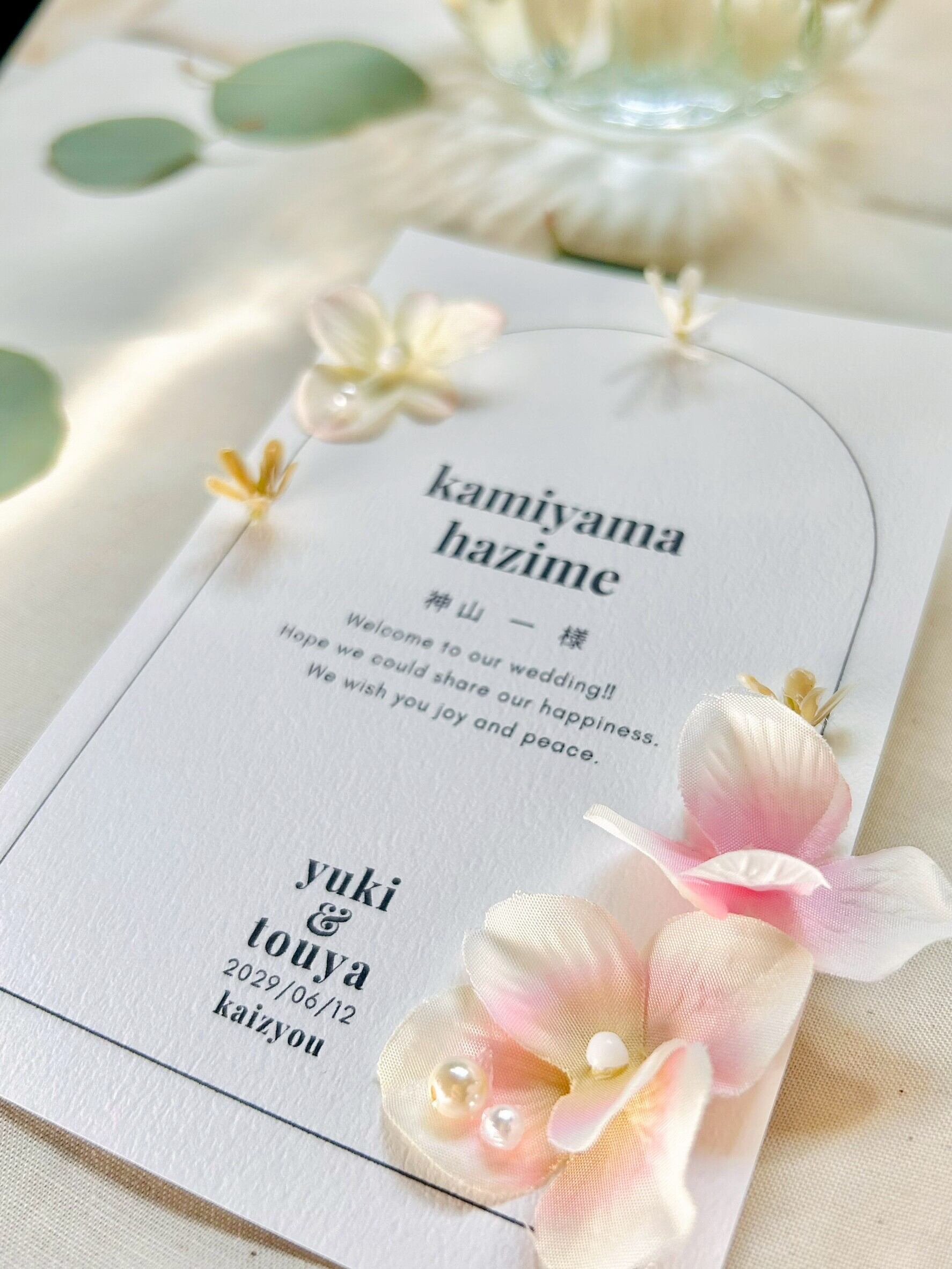 特別な日にゲストをお迎えするエスコートカード(席札)を華やかにしてみてはいかがでしょうか。