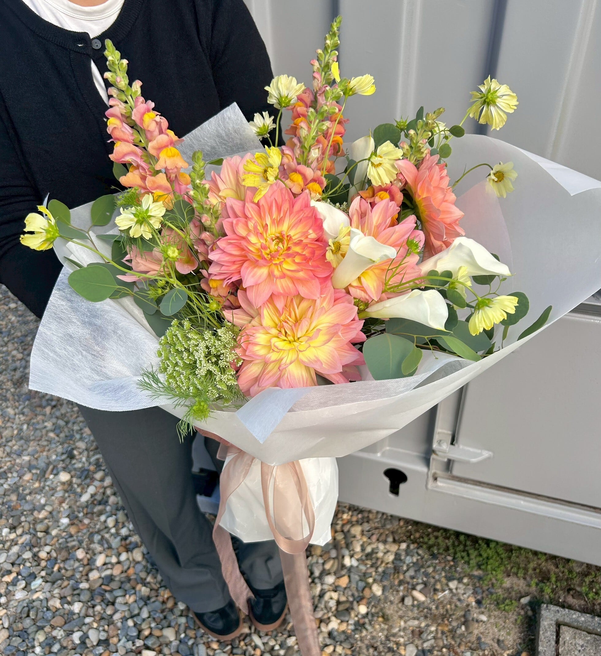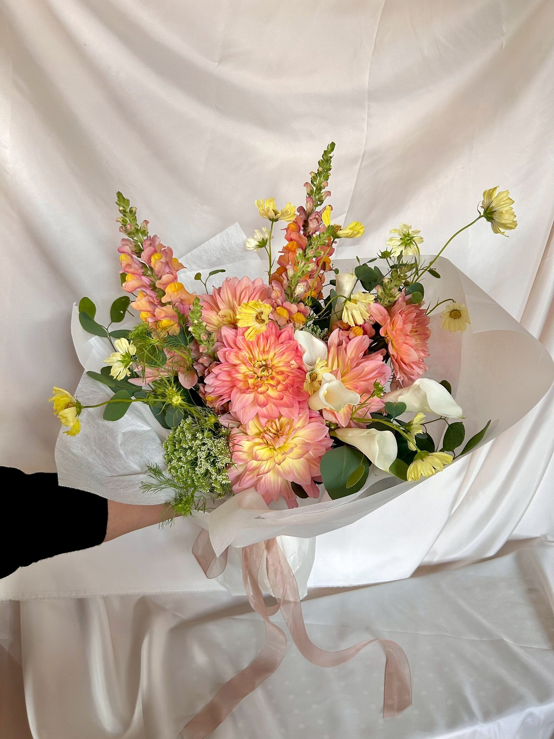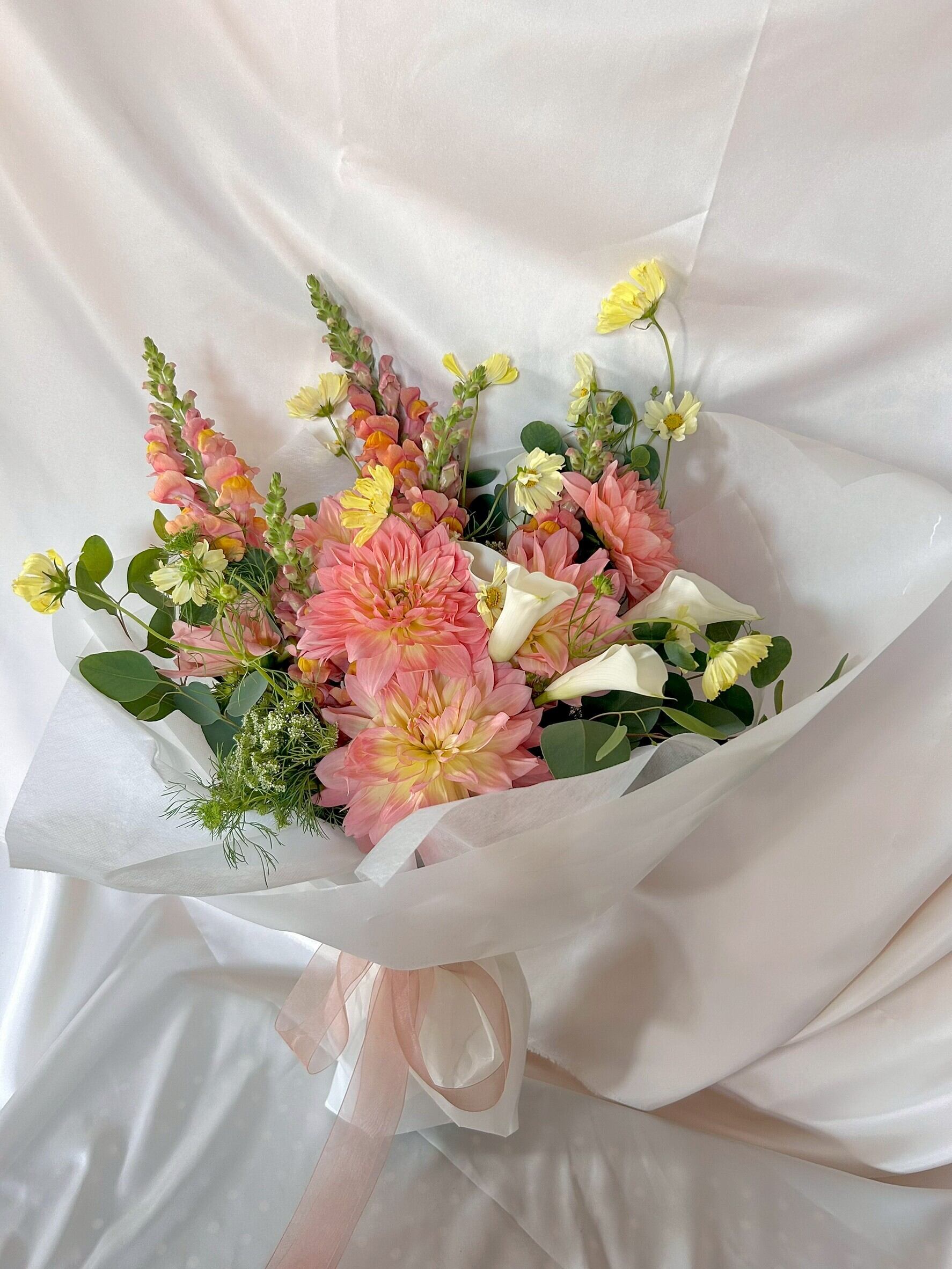 季節のお花で作る、大きめな花束です。