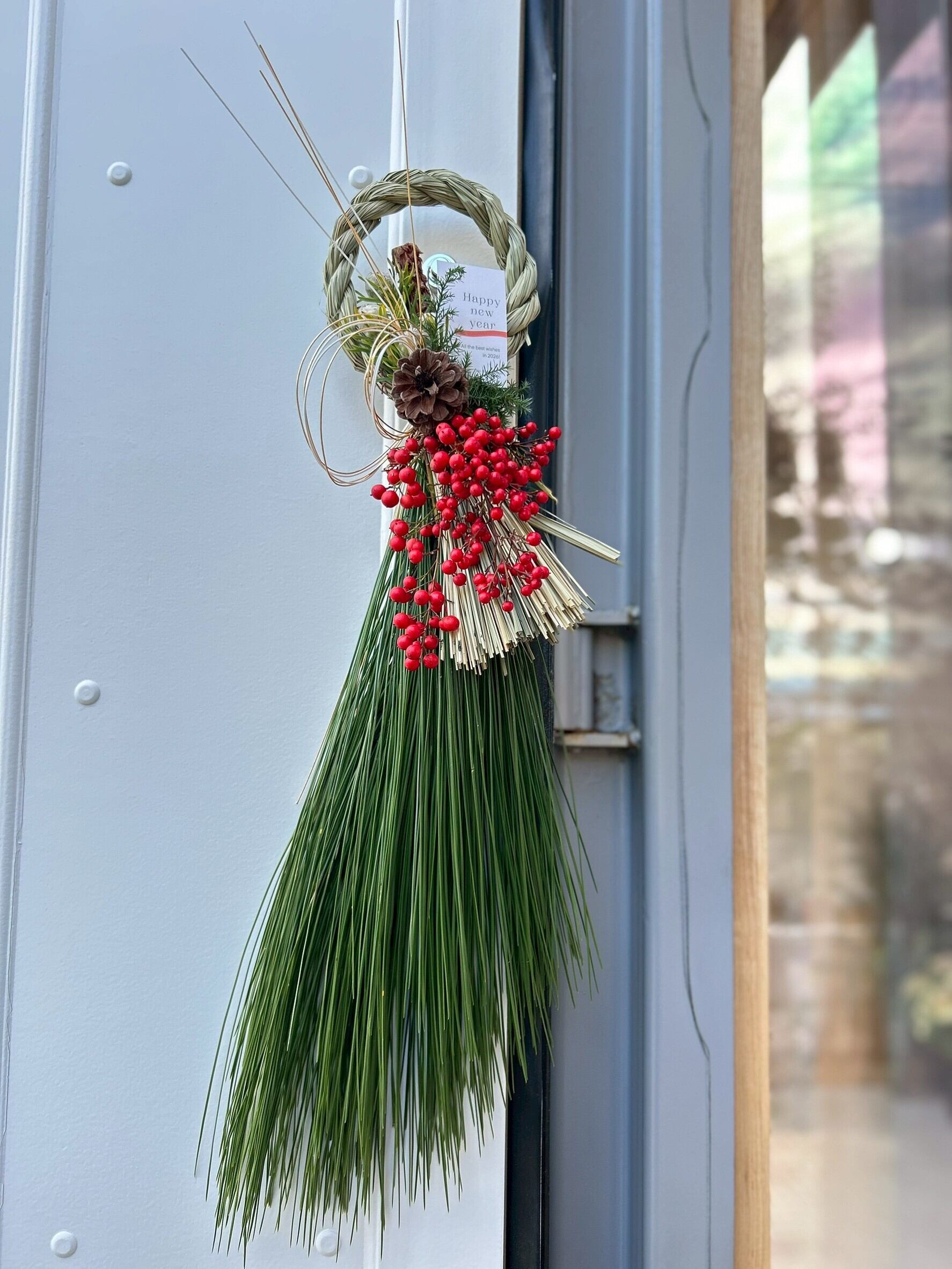 色合い的には一番お正月らしい飾りですが、縦型でスタイリッシュな雰囲気は