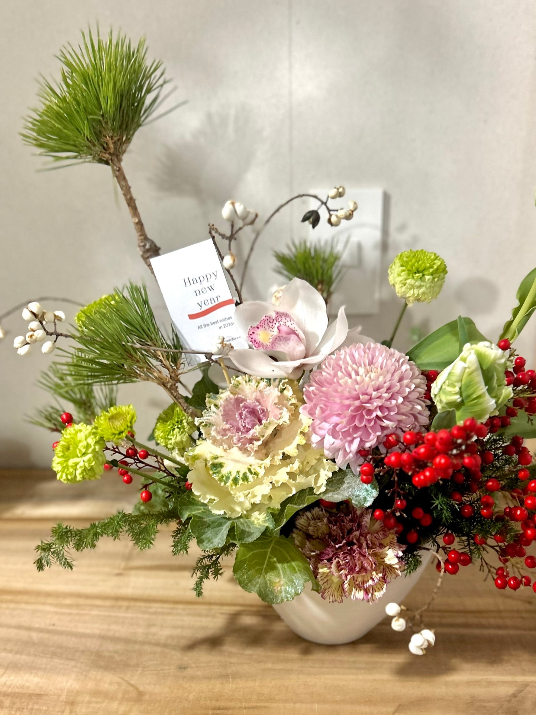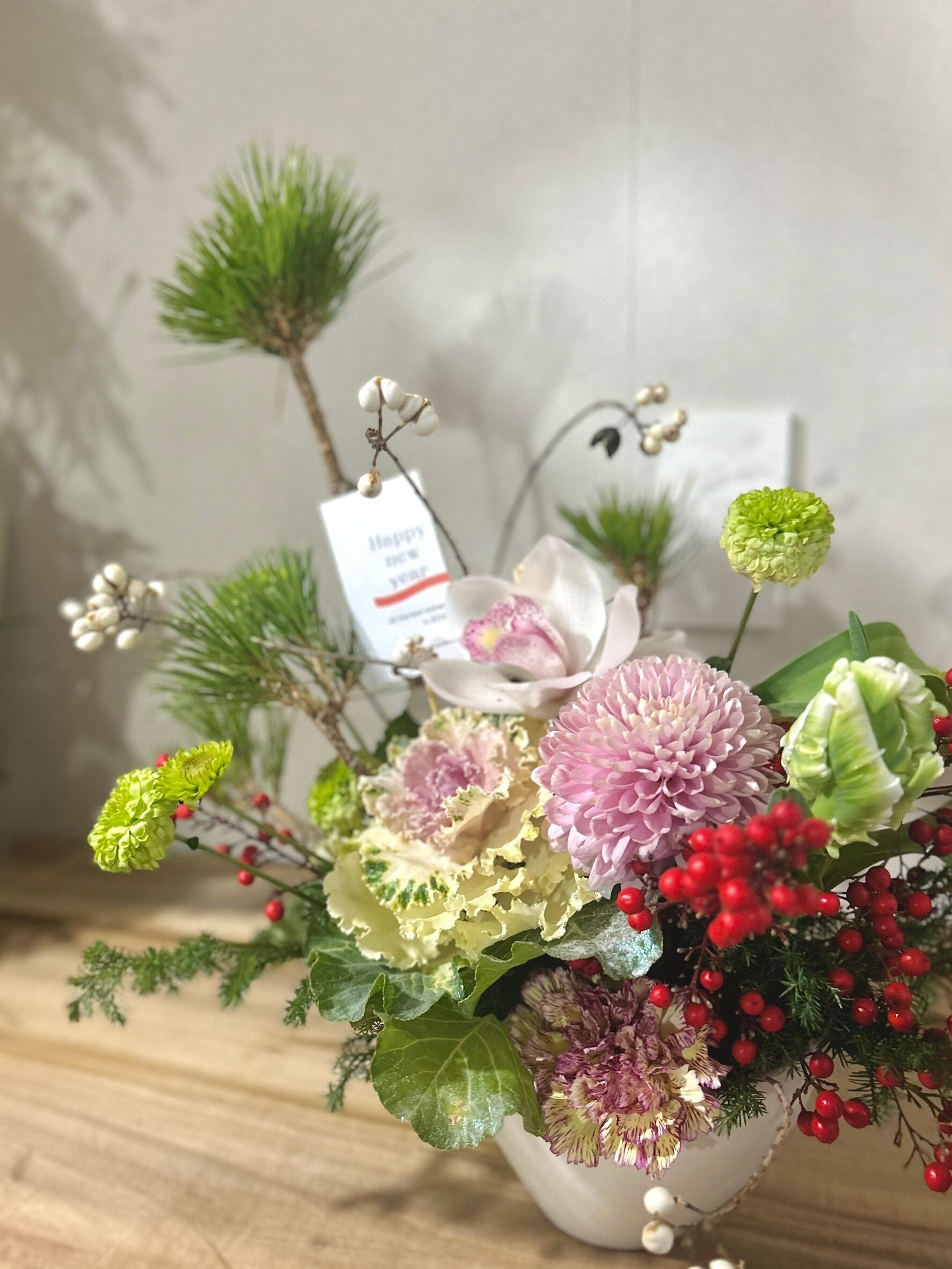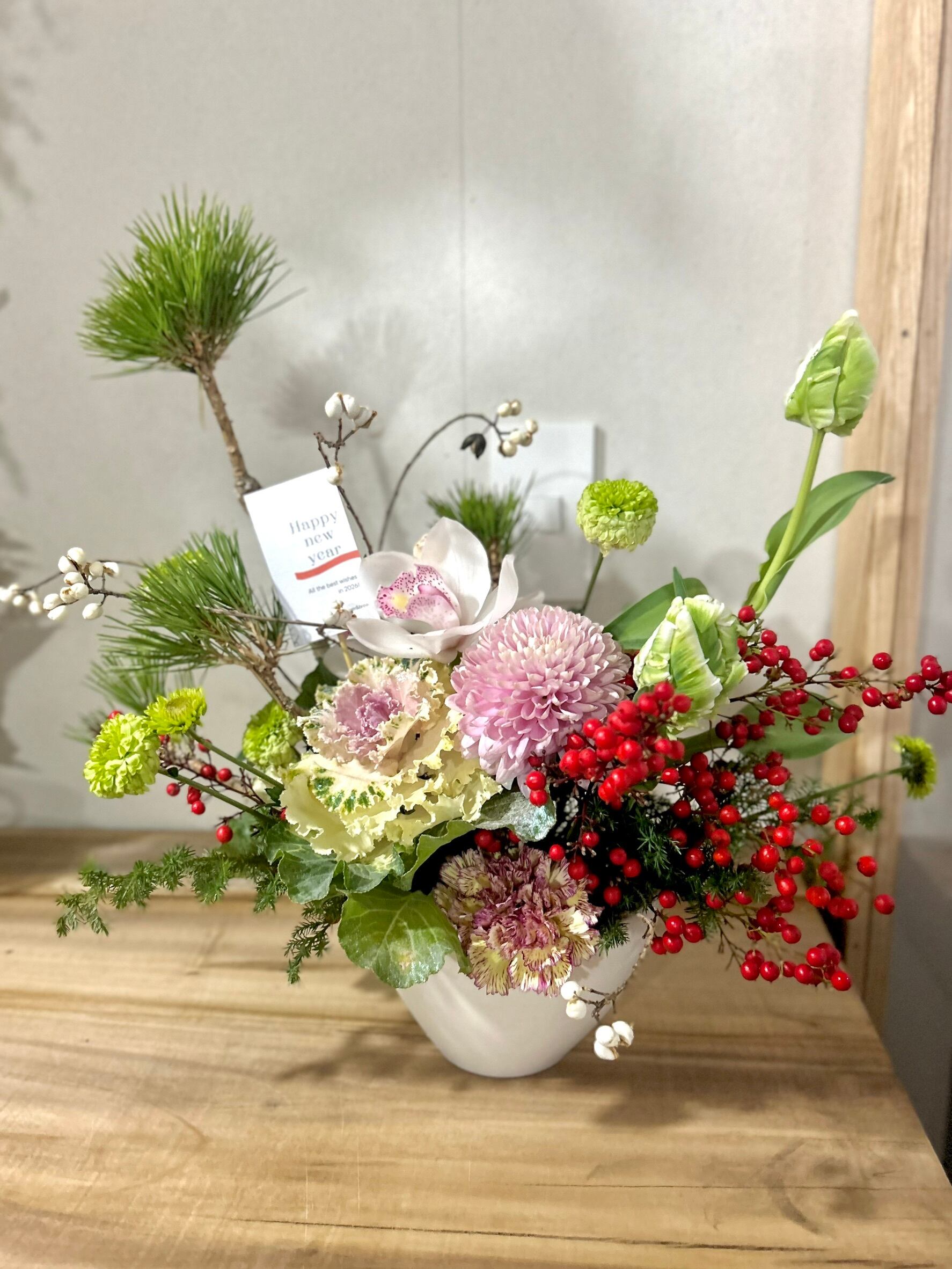 Siki(シキ)の迎春アレンジメントの大き目サイズ。