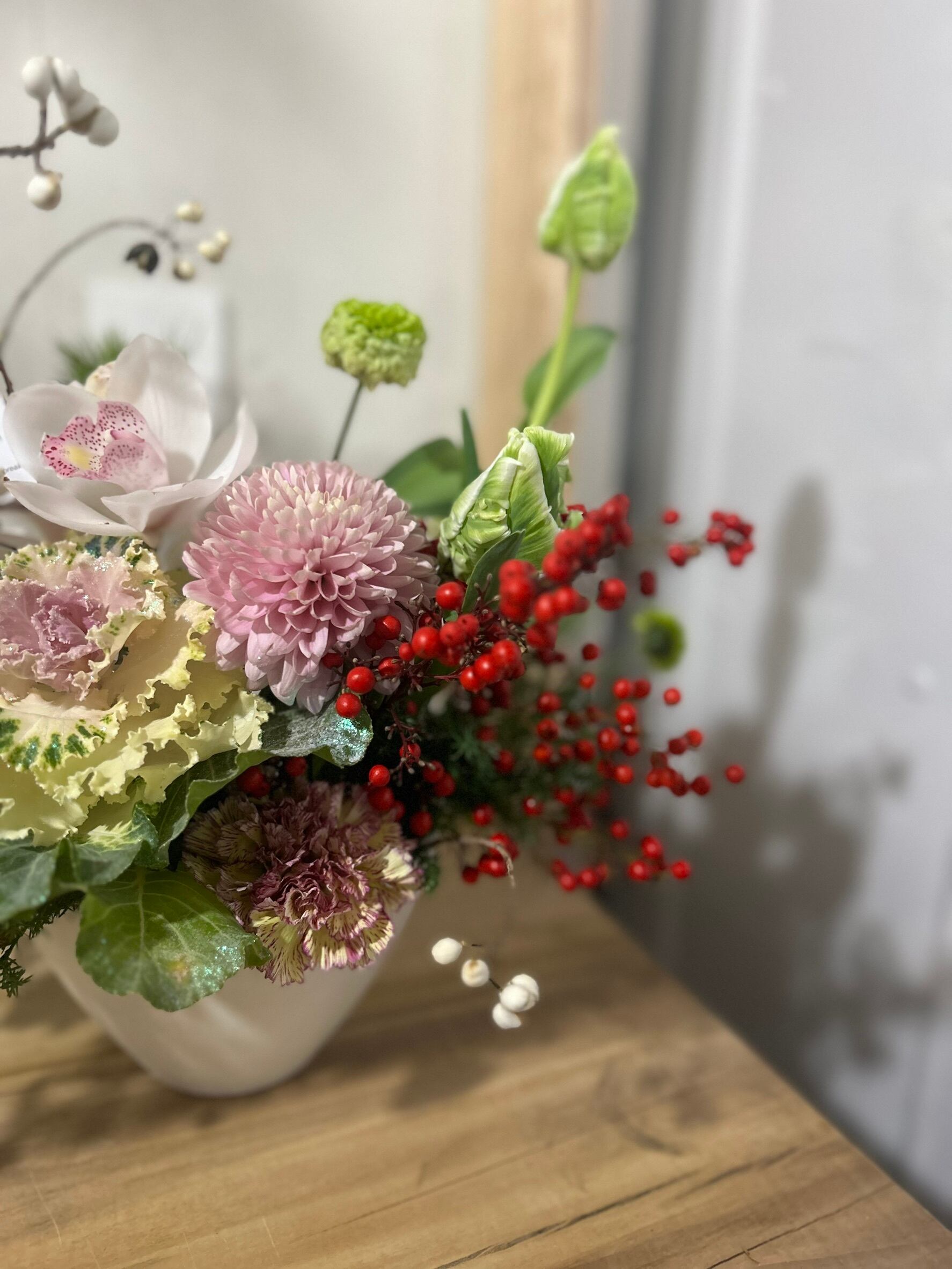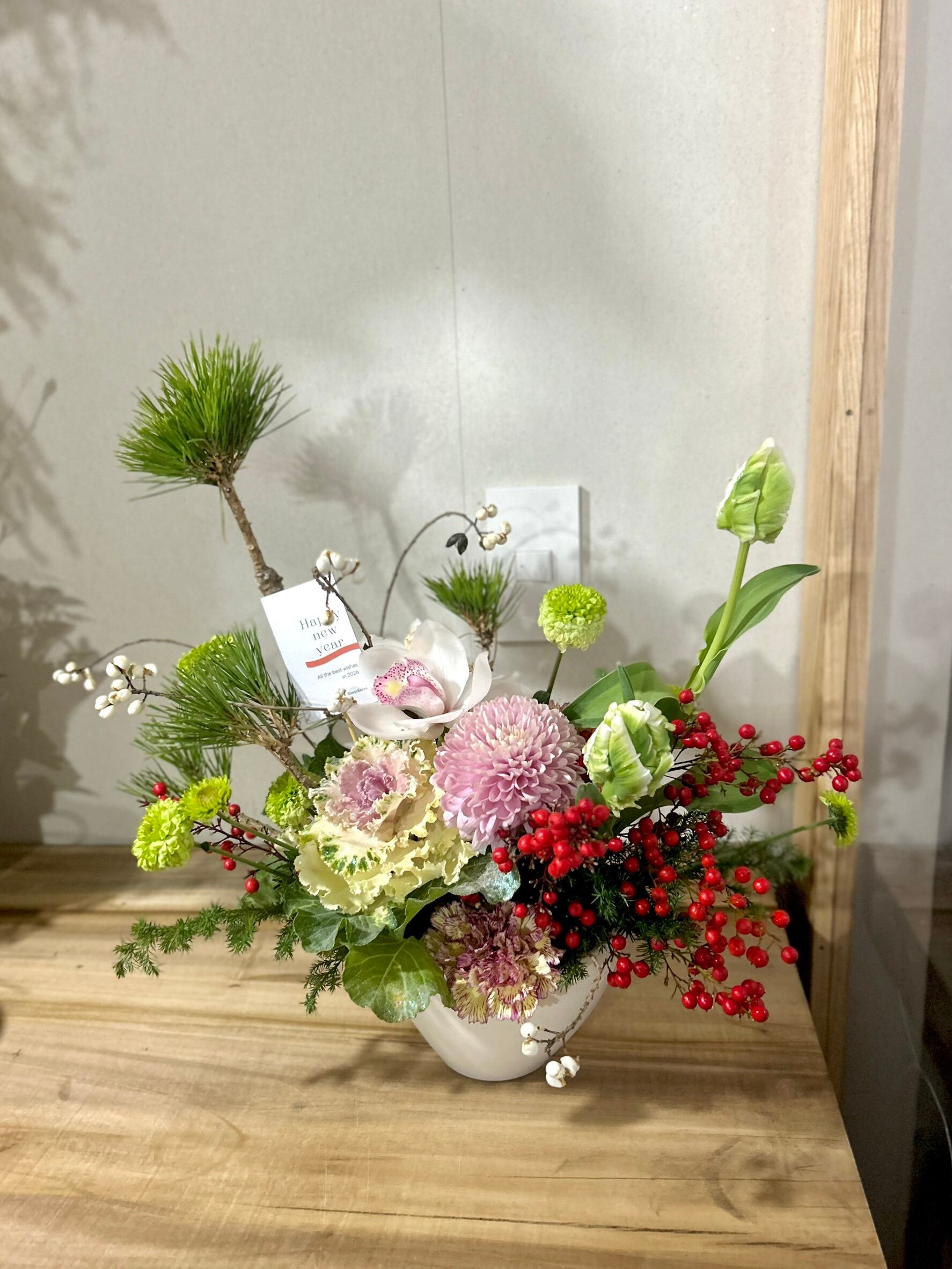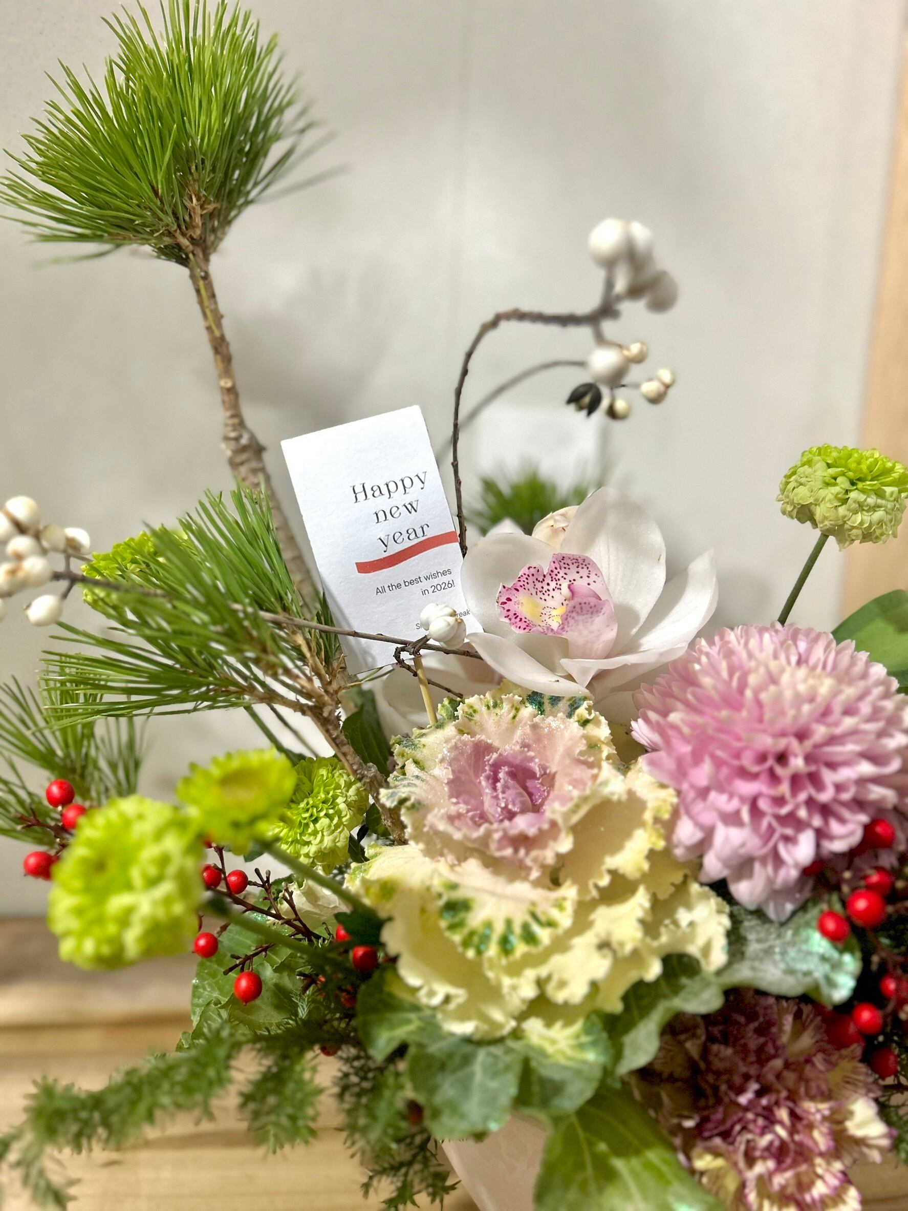 Siki(シキ)の迎春アレンジメントの大き目サイズ。
